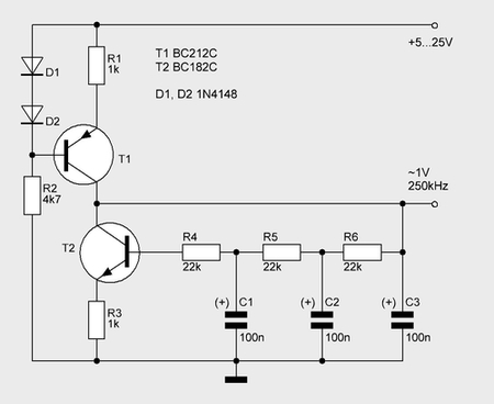 Схема Зворыкина на трех деталях плюс контур запустилась мгновенно, все попытки заставить ее НЕ заработать провалились.Работает от 0,6 вольта, диод можно применить как стабилизатор по питанию.