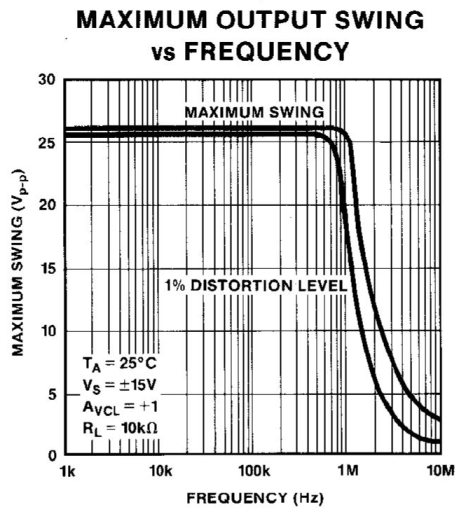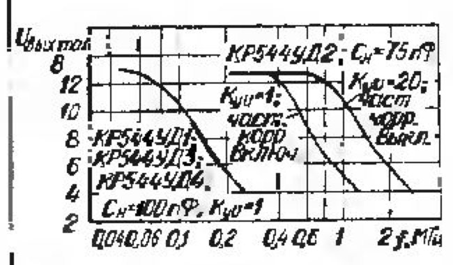 КР544УД2 с замкнутой коррекцией тянет до 400 кГц полную амплитуду, с разомкнутой коррекцией и усилением 20 тянет до 600 кГц