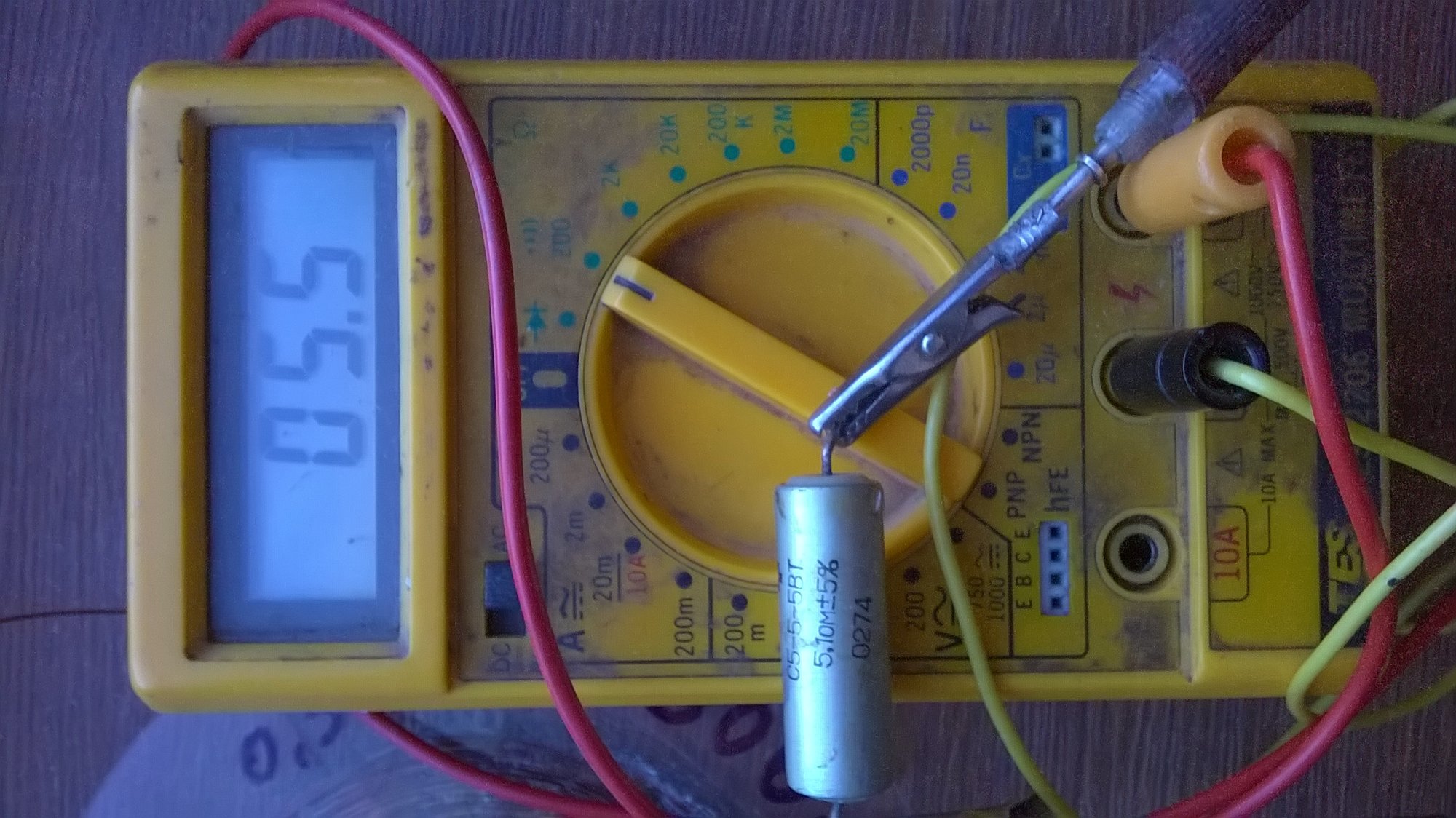 На третьей проверка мультиметра -резистор 5.1 Ом , на мультиметре 5.5Ом,минус R щупов 0.5Ом =5Ом.