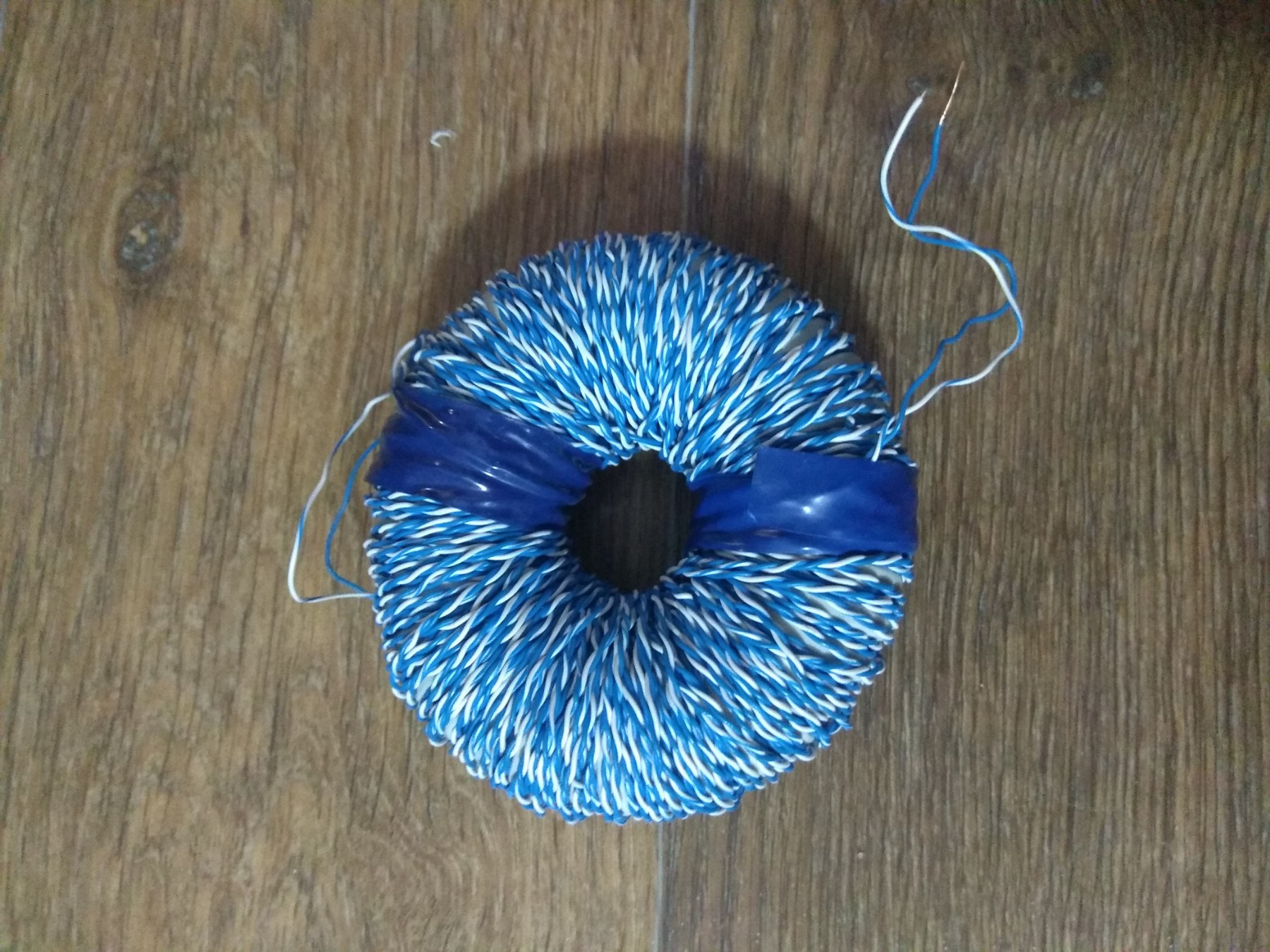 При такой намотке один горячий конец будет в центре катушки из двух проводов, другой - снаружи.