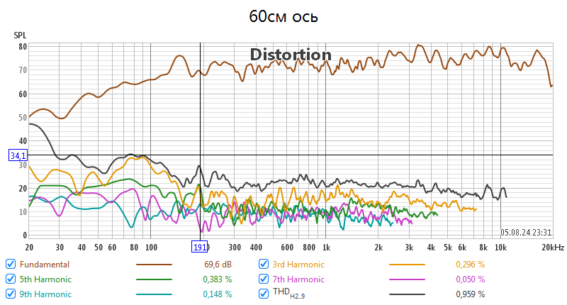 Рассказать как в REW увидеть искажения с гармонями.