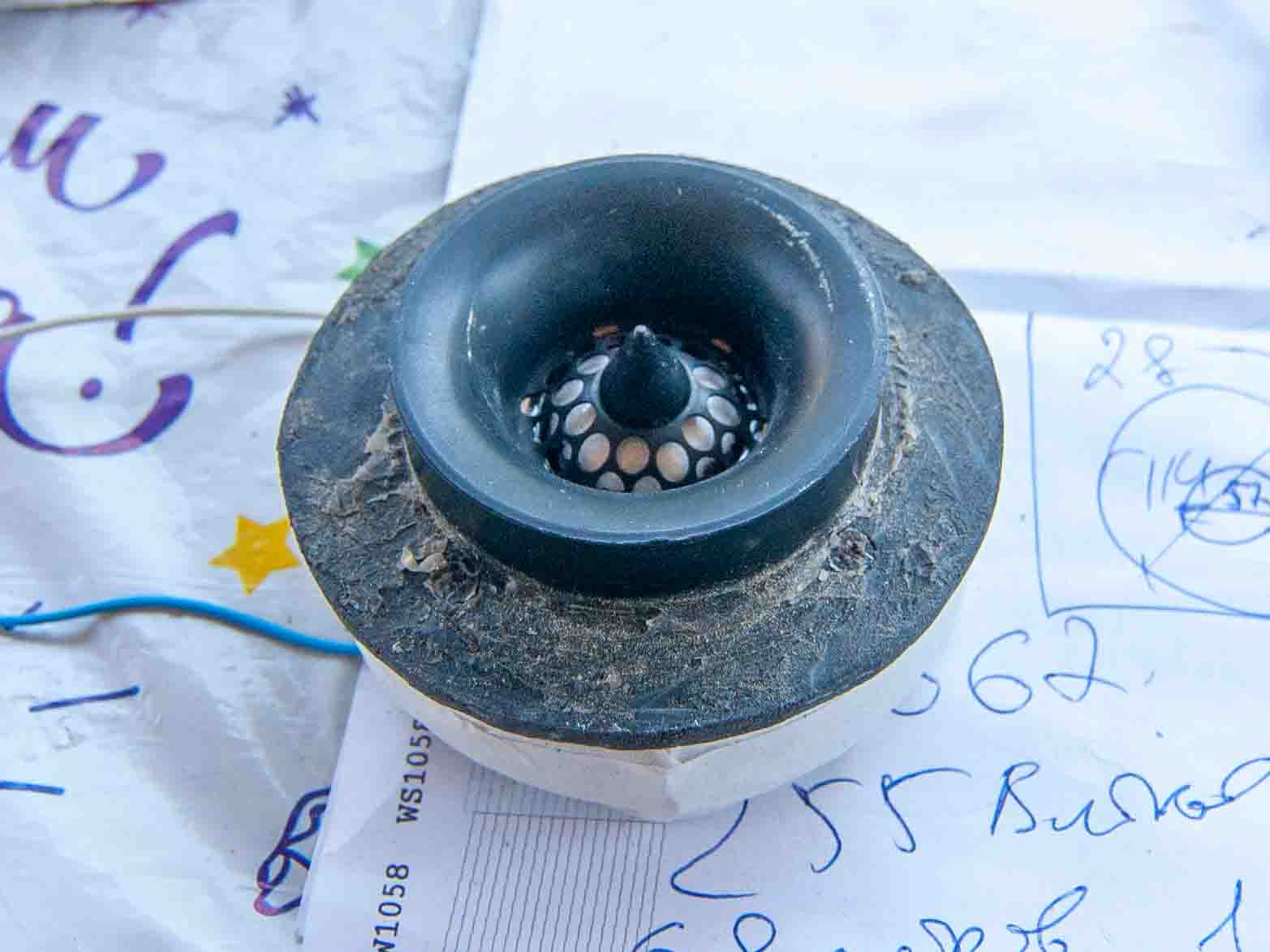 Демонтированы 6гдв4 для перемонтажа ближе к лицевой панели.И пользуясь случаем,решил модернизировать вч и задал вопрос себе или инженерам ,а для чего на купол надели острый друшлак.Делаю замеры на 25 см от вч.с сеточкой. DSC_9034.JPGПолучаемс друшлаком.jpg