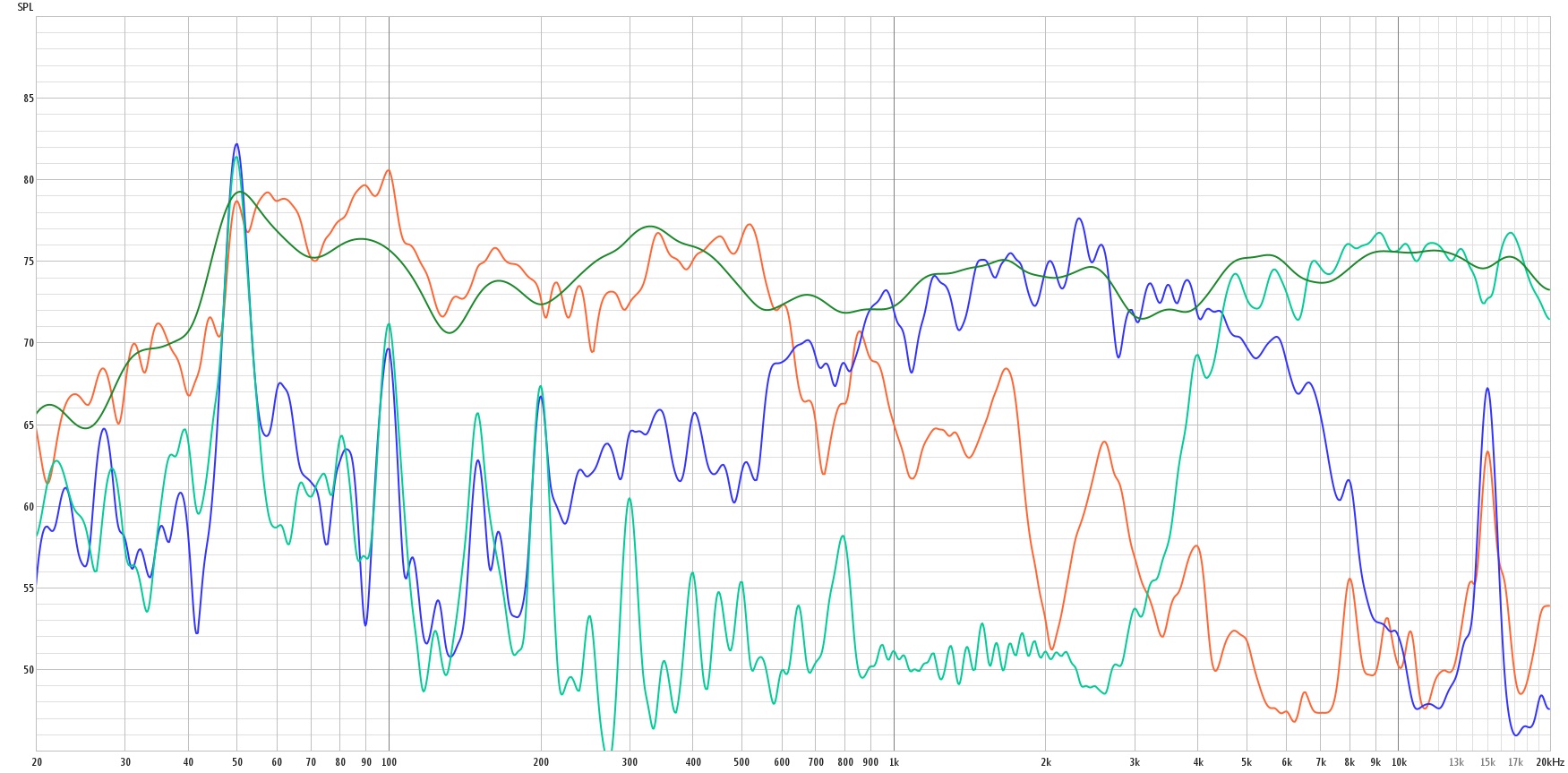 Далее. Если Вы снимаете серию связанных по смыслу АЧХ, в данном случае, это - полосовые и суммарная АЧХ, то делайте это не меняя уровень громкости, положение микрофона, степень сглаживания, временнОе окно (если есть)! На последнем графике разные сглаживания очень мешают.