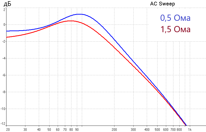 Влияние резистора 2 Ома - примерно -1дБ на частотах от 1 до 20 кГц, ничего особенного