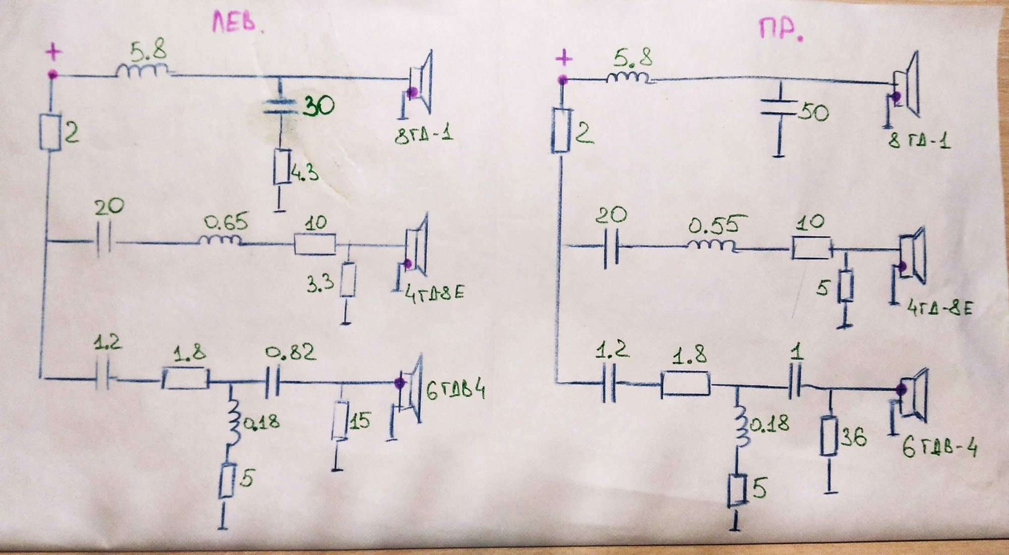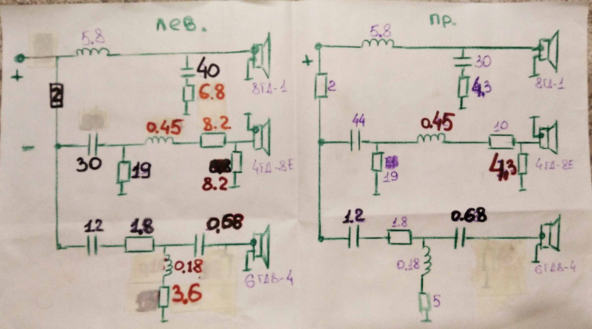 Один басовик немного просажен от рождения поэтому разные цифры.И один сч не хочет влево двигаться,добавление микрофарад в линии задирает пик на 1кГц.