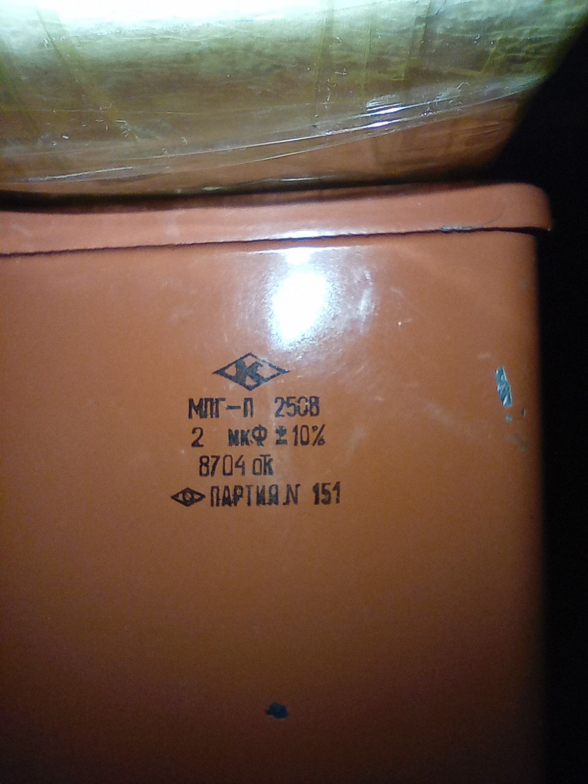 МПГ-П 2мкФ 250В . Внутри 4 парал. конд. по 0.5мкФ. Замотанный скотчем - это 1 конд. 0.5. На Вч динамик нормально.