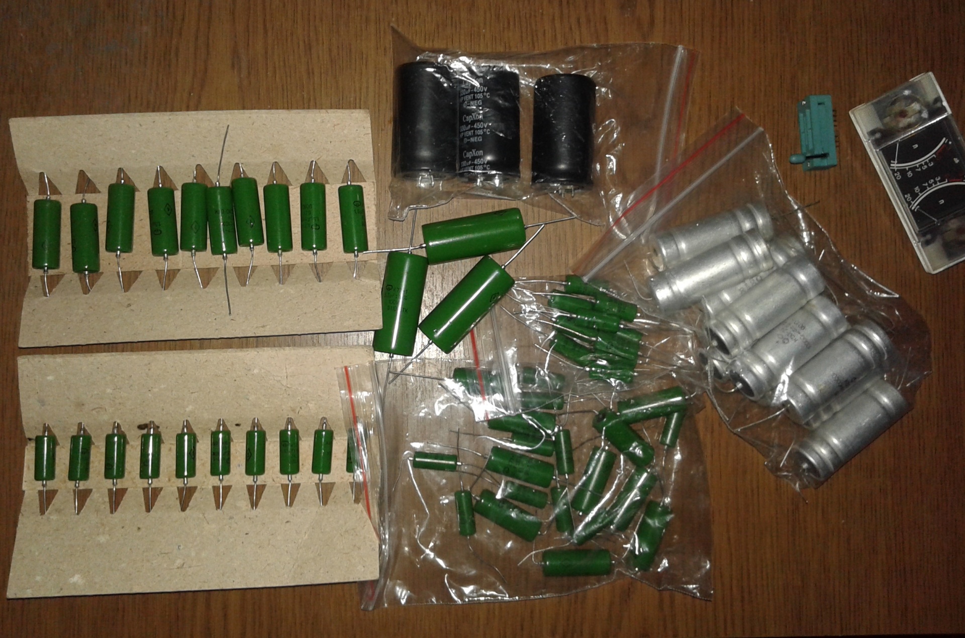 Прикупил по дешёвке совдеповские кондёры ...К77-1 несколько номиналов на напряжения 63В ,100В и 400В и электролиты ёмкостью 10000мкф.