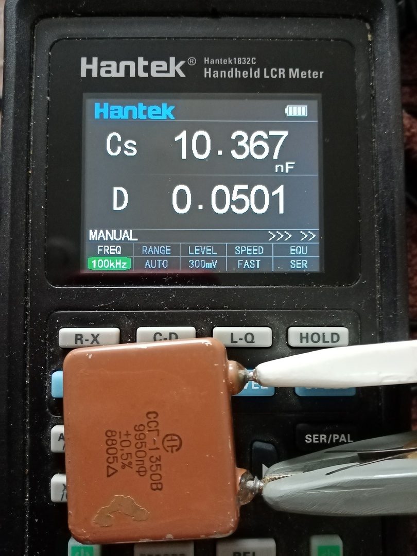 А можно купить у китайцев плёночный(за копейки), у которого тангенс 0,00003-0,00008 ( с нулями не ошибся!) и с утечкой который не меряет мегОметр на 250 вольт. Выводы магнитятся, вот в них наверно будет застревать звук))