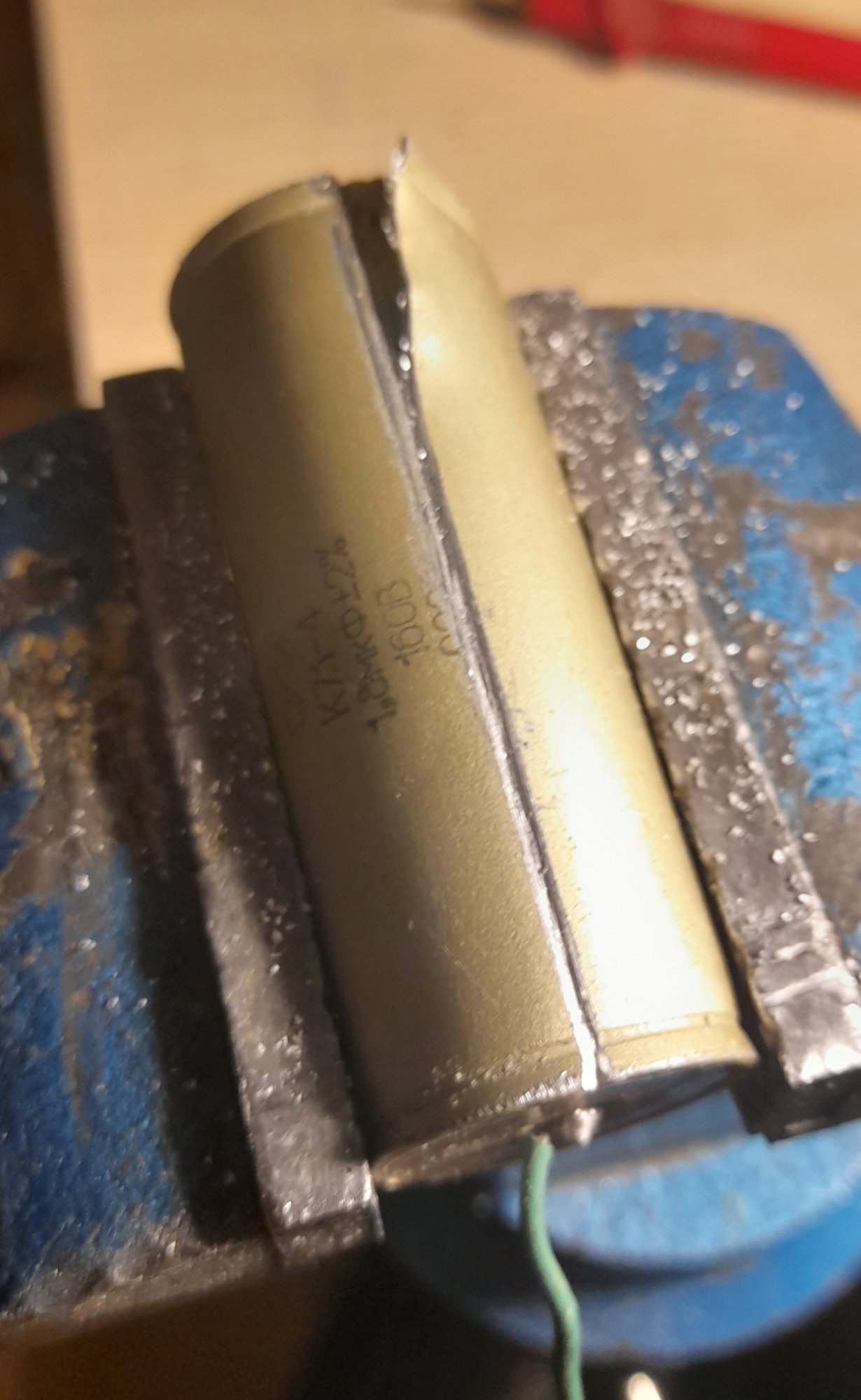 На фото 2 последствия моего "интереса". Поверх конденсатора еще намотано примерно 2 мм пленки - можно пилить.