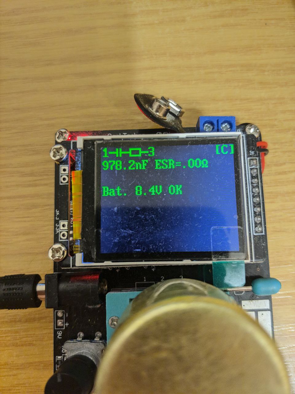 На металлобумаге емкостью 1...4 мкФ прибор может приврать, и показать реактивное сопротивление, вместо ESR. Которое на самом деле будет гораздо меньше.