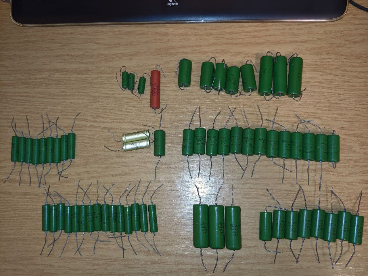 Похвастаюсь покупкой. Потратил за все 17$. Конденсаторы К 77 1, ОСК 77 1. 0.22мкф 63в, 0.68мкф 63в, 1мкф 100в, 1.5 мкф 100в, 3,3мкф 63в, 6.8мкф 63в. Ещё 3шт 1мкф 200вольт. Ну и пара к73 16 на 2.2мкф 63 вольта.