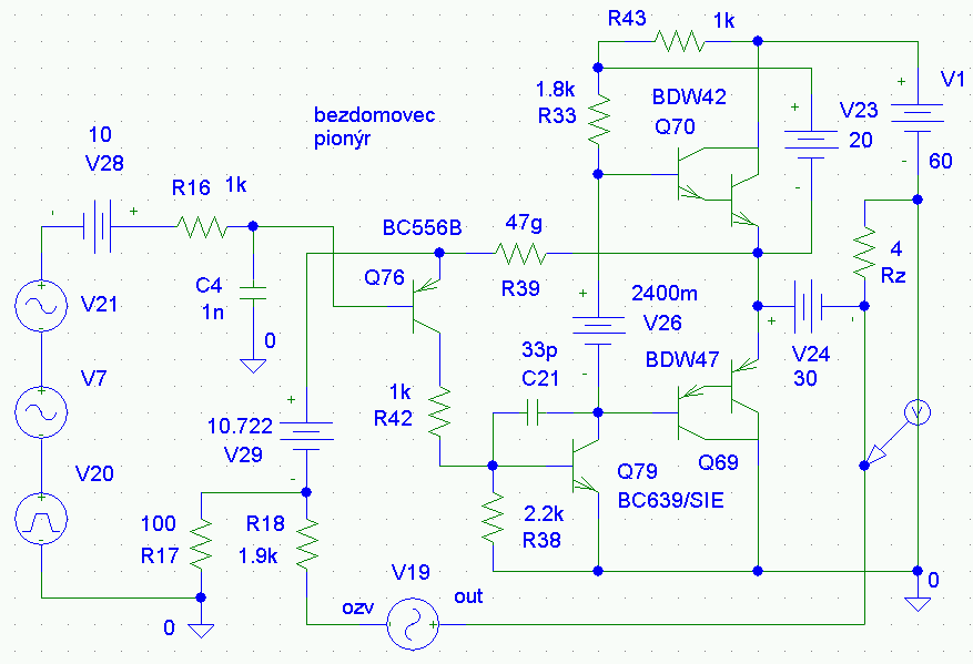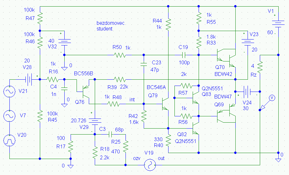 Зверніть увагу, що тут асиметричний повтoрювач наявний після кожного з каскадів підсилення напруги. І улюбленої проміж тут вольтодобавки до цілих трьох штук на підсилювач.