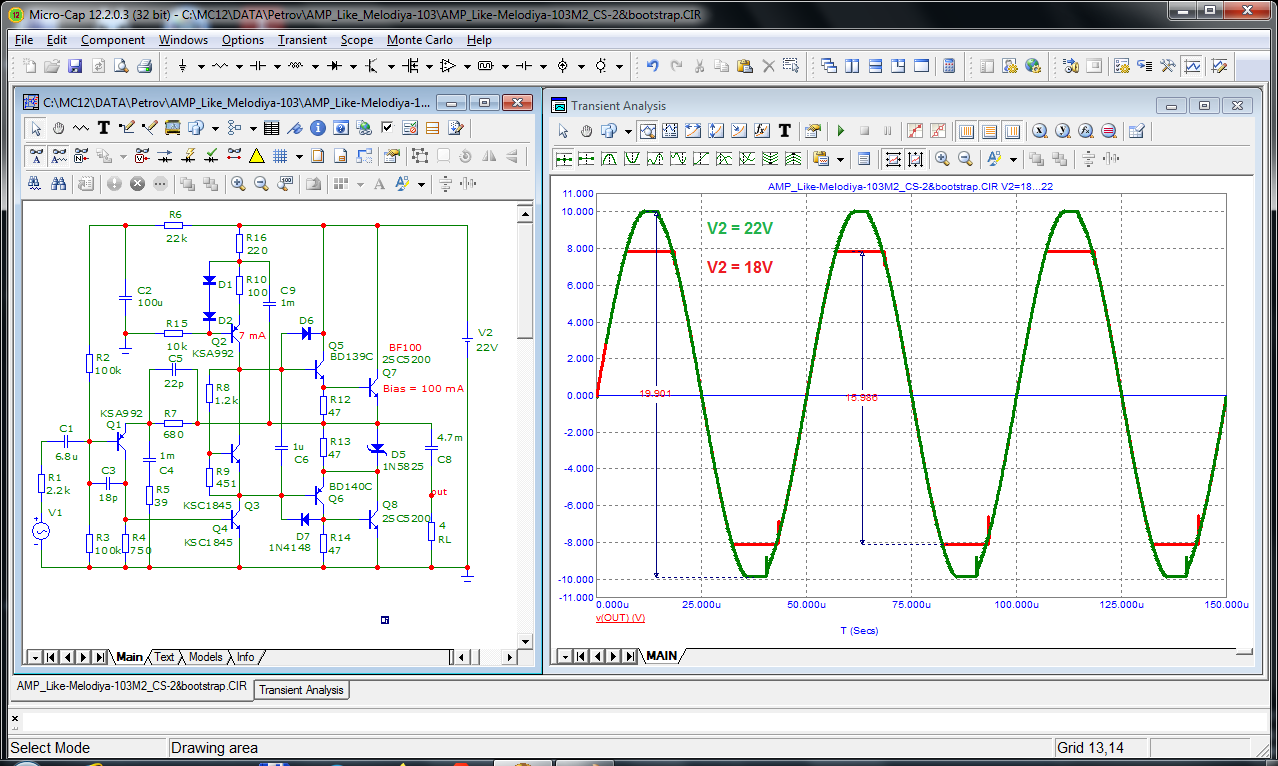 У Вас нет моделей кт863?раз уж оставили квази и питание до 30в,то имеет смысл поставить их на выход ,должно быть лучше так средняя бета 350