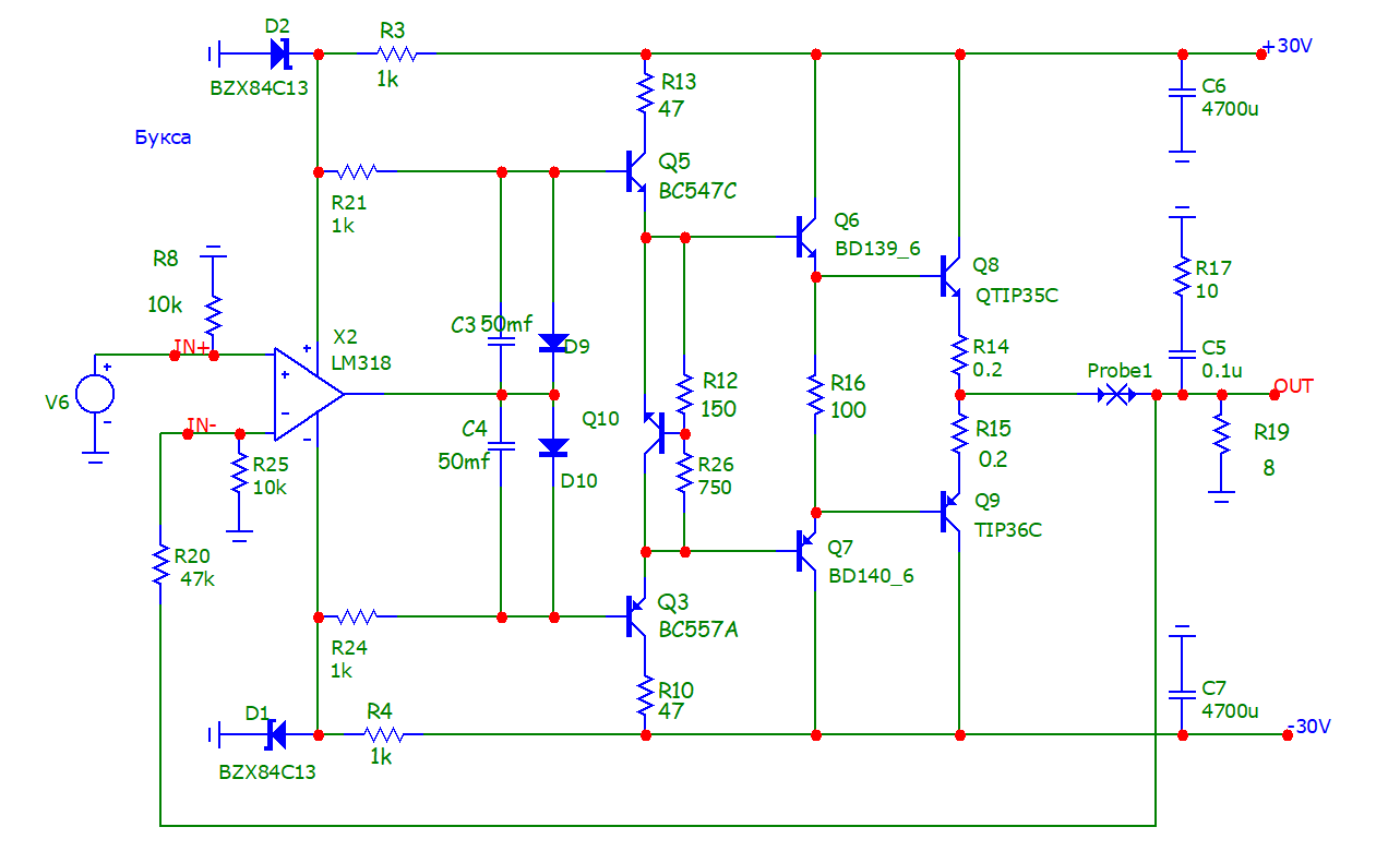 Мой усилители проект в Микро капе.
