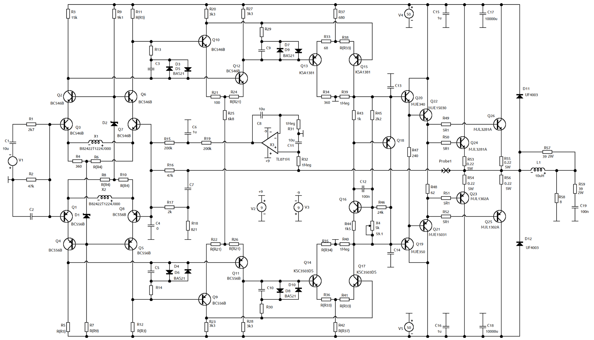 PS. Похоже, что просто набросаны детали и соединены проводочками, т. к. судя по генератору входного сигнала и расположению пробника анализ не запускался вообще - ведь ни одной картинки результата анализов ТС не привел нигде.