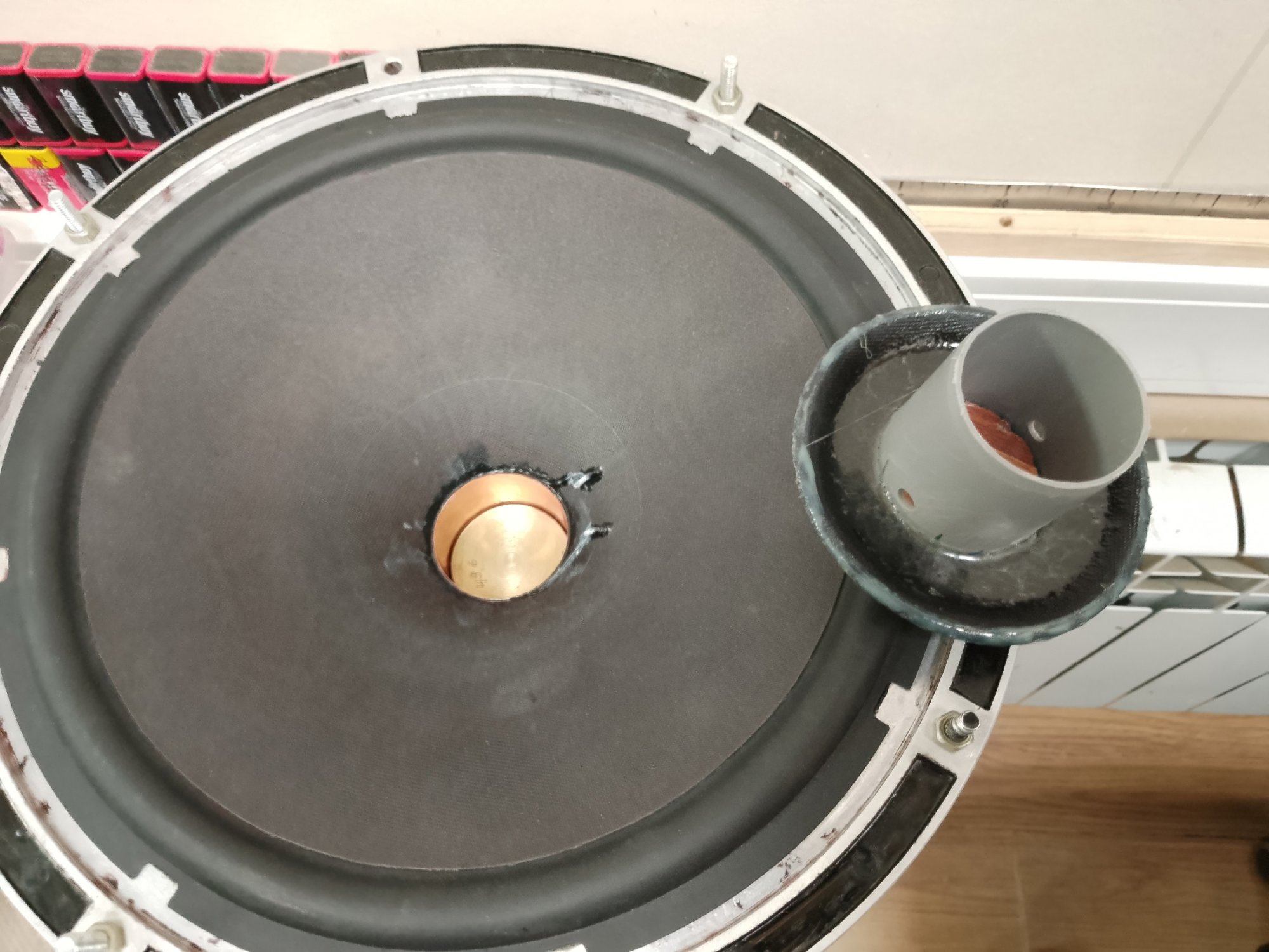 Склеил подвижку. Резонанс почти 39 Гц вышел. Еще без пыльника. Подсохнет, попробую размять. Чтобы выйти хотя бы на 33 Гц при той же гибкости подвижной системы, нужна еще масса в +15 г.