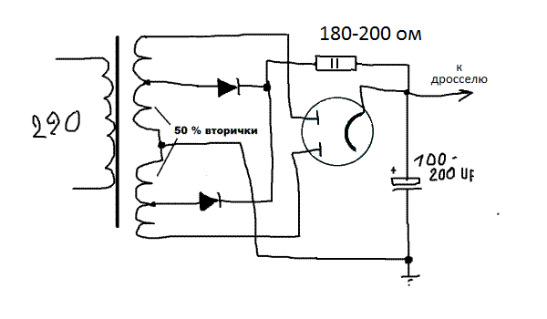 Хоть иди на рынок и ищи в хламе , занедорого. А! Ещё кентотроны можно применить, 5Ц4С, да нет их у меня, все выкинул за недостойное поведение с искрами и электросваркой.