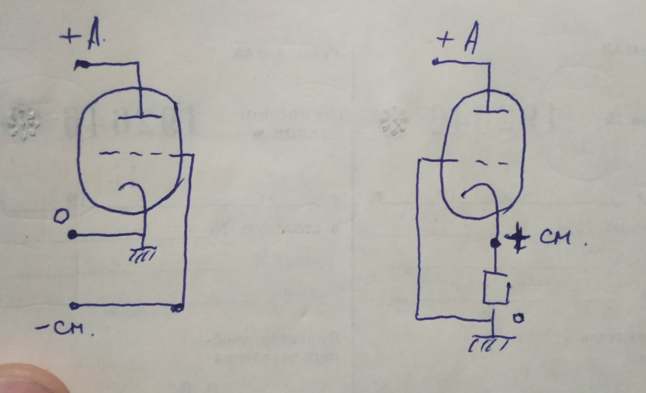 В итоге между сеткой и катодом напряжение то же, между катодом и анодом то же, мы просто прибавляем отрицательное питание сетки к общему и на это же напряжение поднимаем катод.