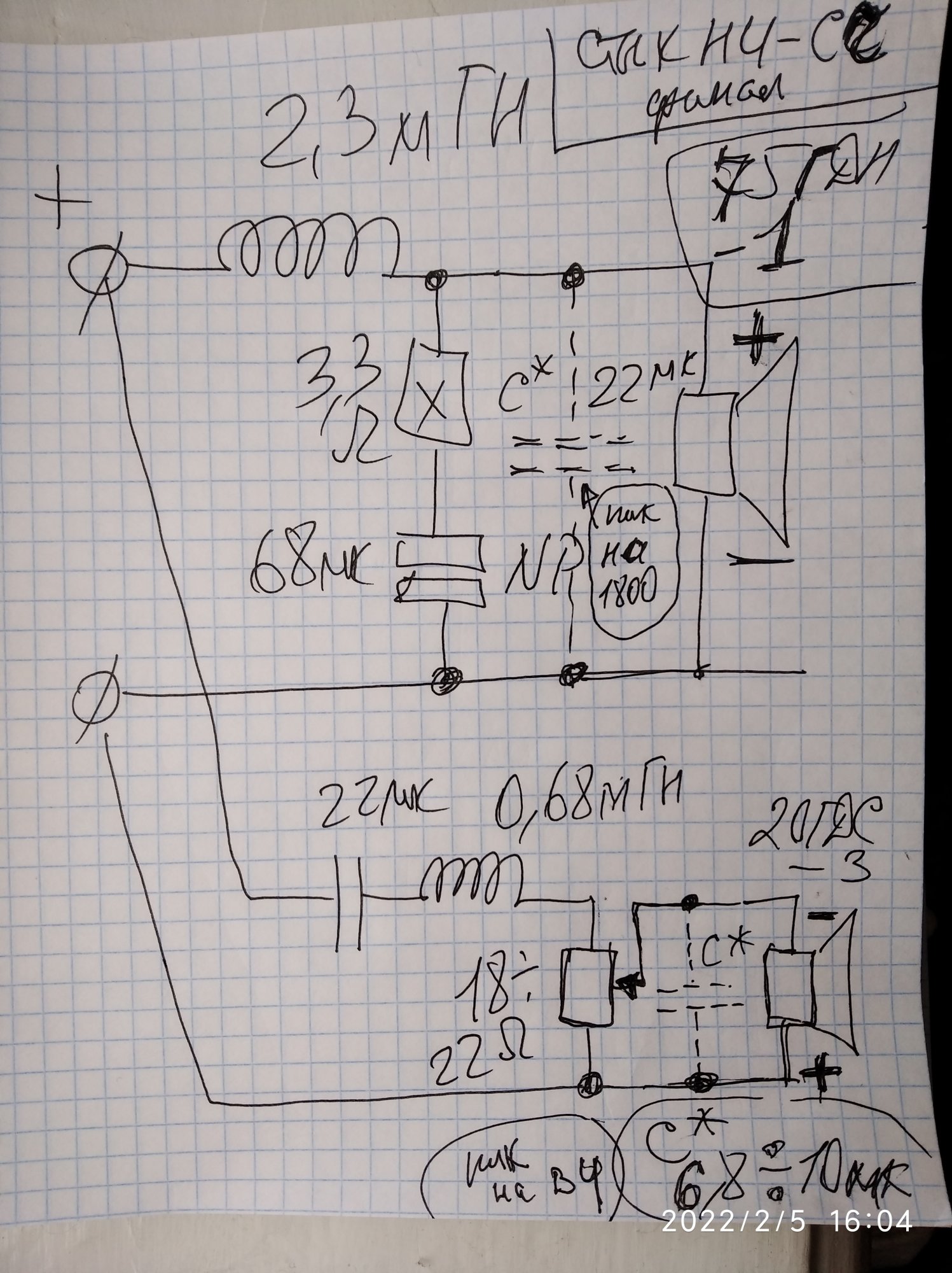 найдена схема от висатоновской колонки с фильтрами с разделом на 700 и 4500 для этого дина BG-17