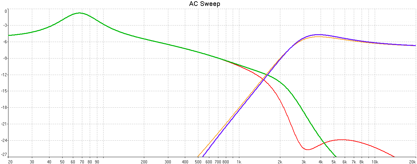 АЧХ Tectonic без фильтра (розовый) и сфильтром (голубой).