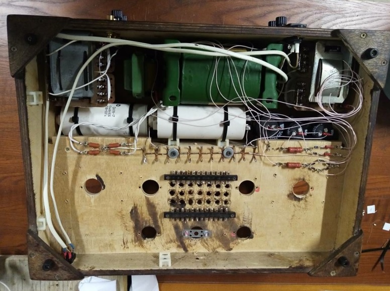 Взял корпус фанерный от своего старого усилителя. Намотал второй выходной трансформатор. Собрал блок питания в корпусе.