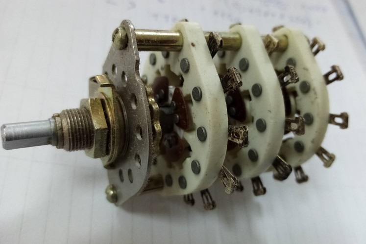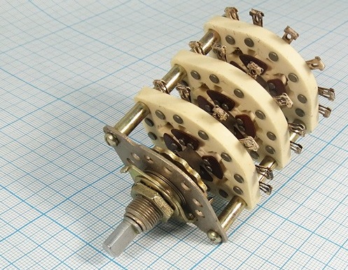 Хочу организовать возможность переключения между двумя усилителями. Решил это сделать с помощью галетного переключателя. Заказал в "Чип и Дипе" вот такой: