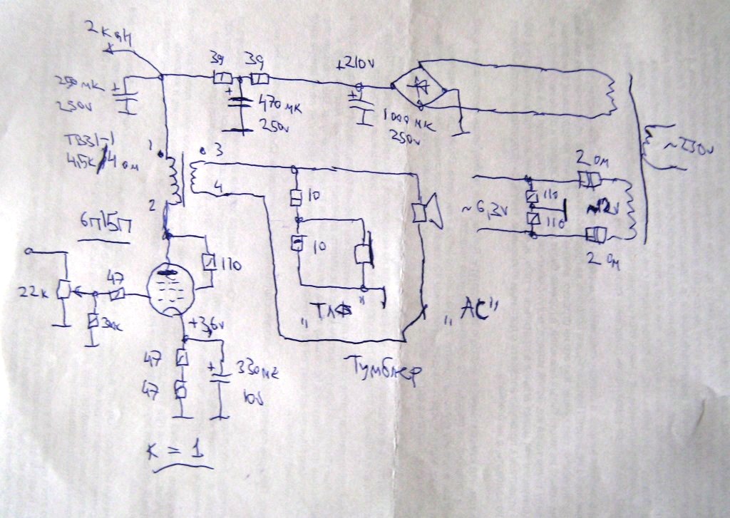 хотя, конечно, хорошая лампочка да ещё и в подарок - приятно получить.Не, ты можешь спаять выходной каскад на 6с19п, ватта 2 выдает, звук обещает быть. И выходное сам подберешь, трансформатором выходным, от чего угодно. То есть, как Юра Робертович пишет, ТНишко какой-нибудь.Спасибо, Александр.