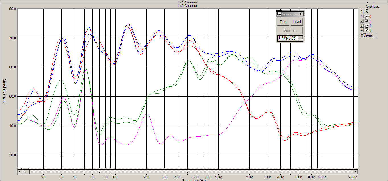 Расстояние между СЧ и ВЧ по вертикали - у меня сантиметров 15 всего. То есть, между этими двумя замерами - я микрофон опустил сантиметров на 7. На одном метре расстояния - видимо, это не существенно. Ну и можно говорить, что при таких малых отступлениях от оси (7 см) направленность не чувствуется. Так понимаю.