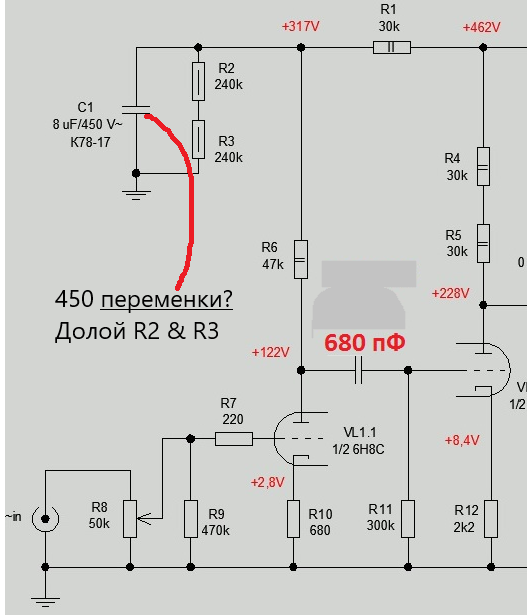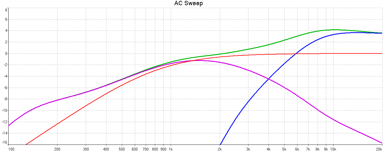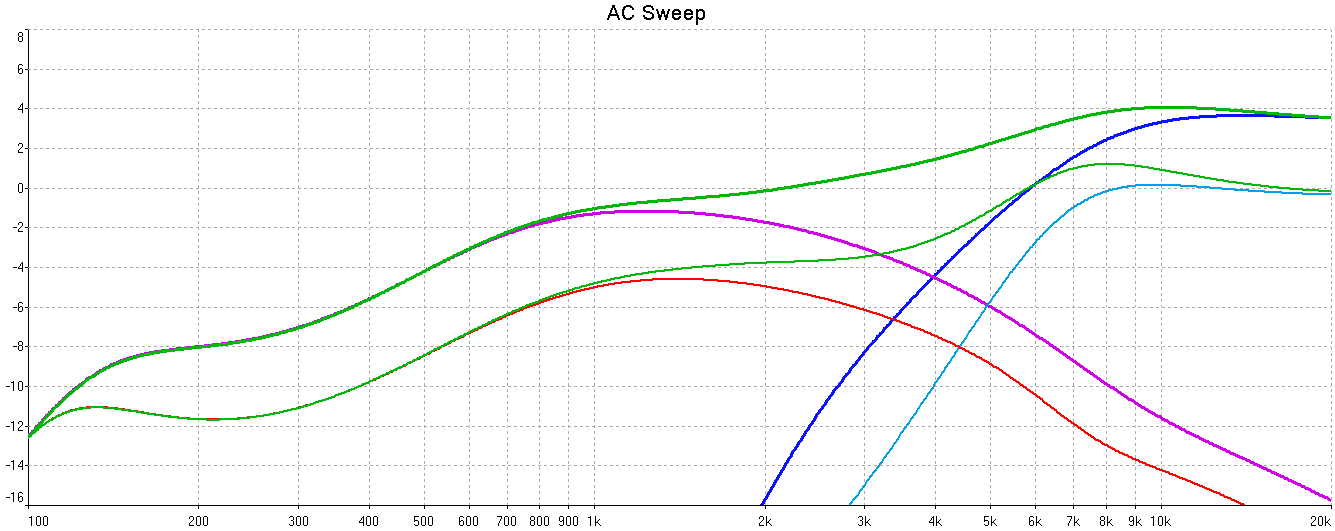 Дядя Пётр! Есть проблемы. При попытке вытянуть максимум чувствительности СЧ/ВЧ блока я столкнулся с тем, что СЧ - 4 Ома, и в параллель ему резистор не должен стоять, а тогда дин заболтается, ибо 30 мкФ - высокое сопротивление на частоте его мех. резонанса. Выхода два: или доп. катушка на землю, или - удаление 30 мкФ и срез НЧ между каскадами SE. И то - лучше бы SE был рассчитан на 4 Ома. Пока считаю для доп. катушки.