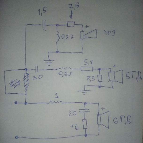 Вчера, собрал схему, по которой 6ГД-1 был НЧ как наиболее приемлемый вариант по звучанию в трёхполоску: