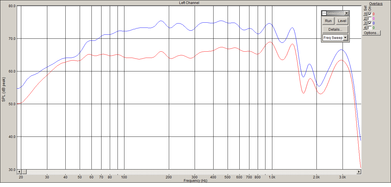 При измерениях - динамик подключен к УНЧ на ИМСтеперь у неё не 0.25, а 0.33 добротность, без 2 Ом выходного сопротивления усилителя.