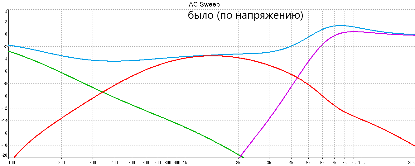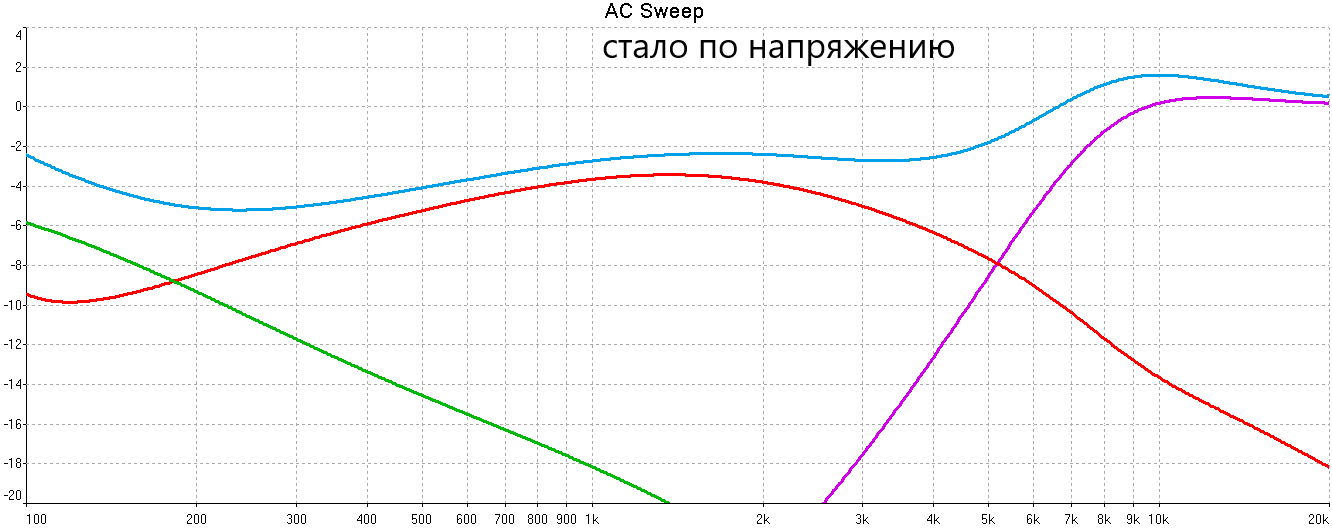 Вот что стало, по напряжениям, переворот фазы НЧ учтён, поворот регулятора НЧ учтён как -3дБ (а может быть и -6дБ?):