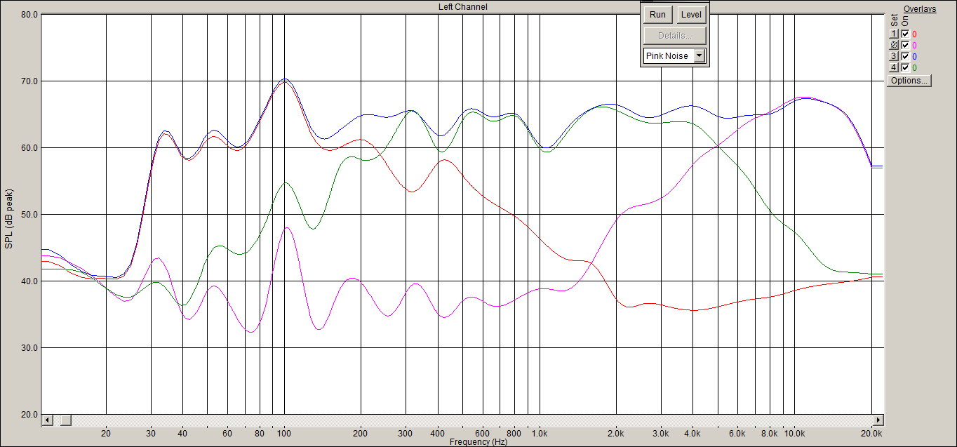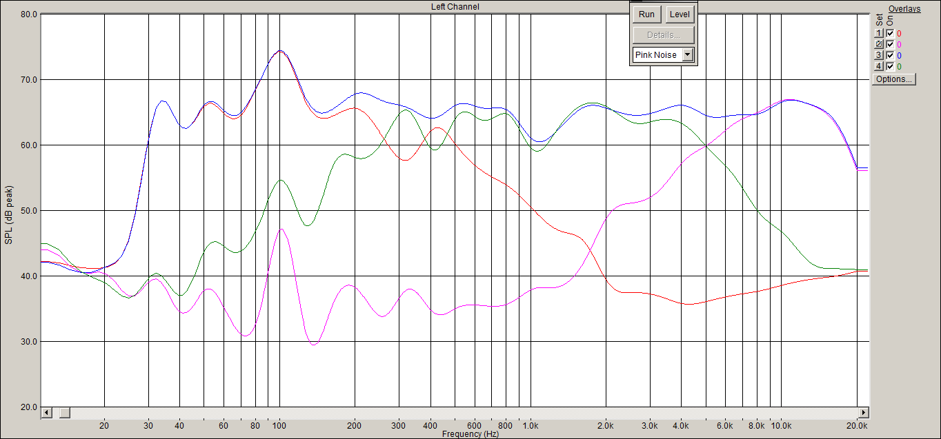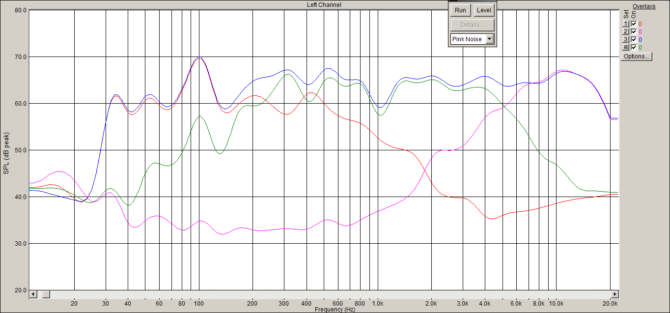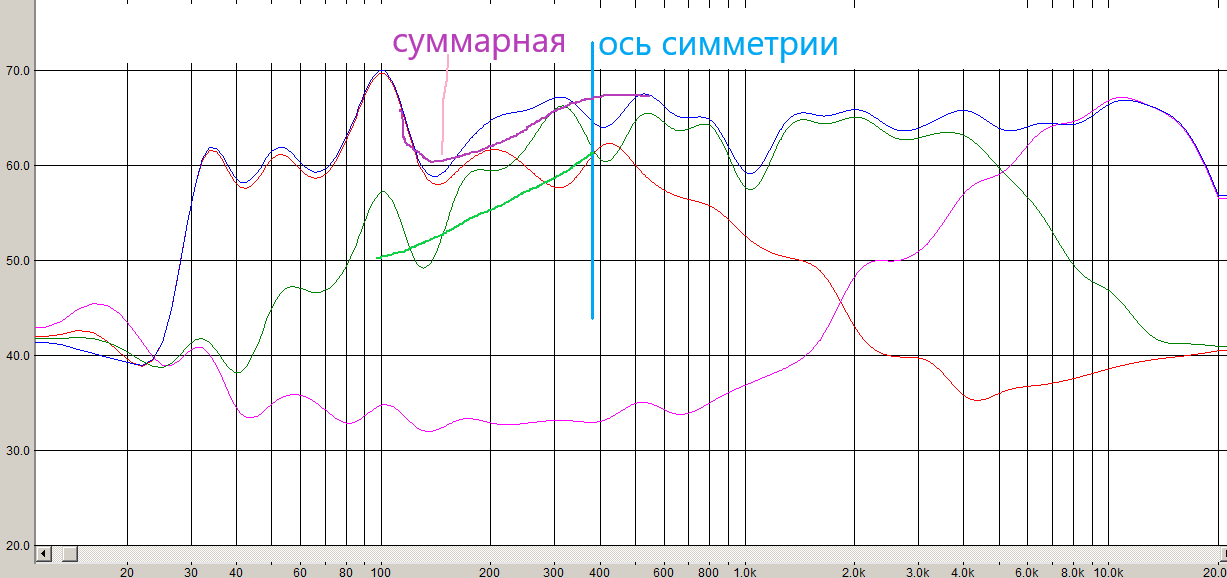 Ровная НЧ полка 30-400, красивый спад . Активный НЧ модуль, крутнуть ручку-добавить низ. Всех делов. Низы не трогаем , все достойно. Задача убрать избыток отдачи средника на стыке (наезд полос) , что сейчас и сделано.