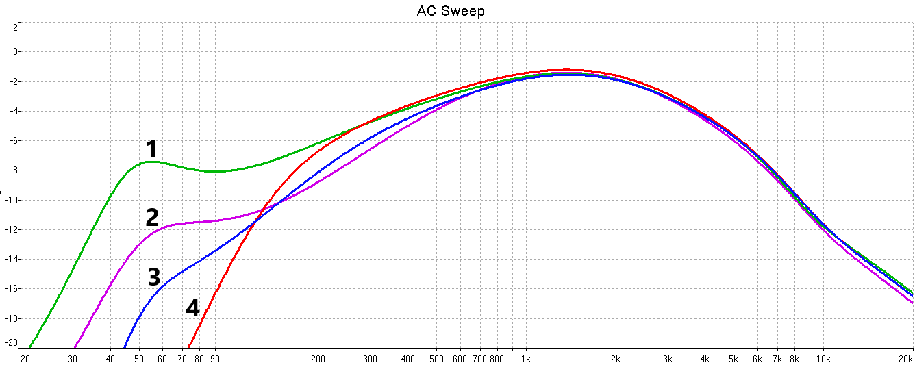 Сохранил графики. И вывел на экран чисто изменения - басовик и общая (с катушкой и без):