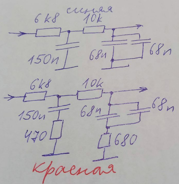 На восприятие ухом - попробую отслушать изменения (голос баритон) самостоятельно, позже (есть возможность послушать без басовика - левый щит с одним вариантом фильтра, потом переткнуть джеки и отдельно послушать правый щит без басовика с изменённым фильтром. Может что услышу про "баритон голоса").