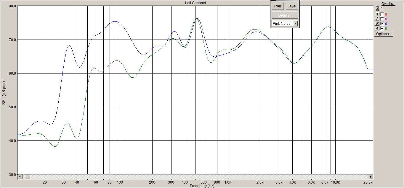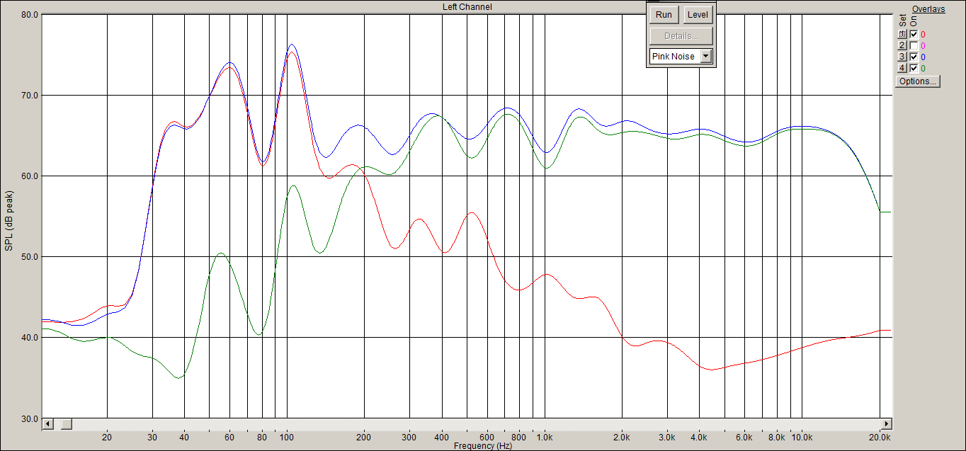То есть, возможные пары красный+синий или зелёный+розовый, нда... Зато понятно, что разницу на частоте 90 Гц даёт левый угол, а холмик 250 Гц - правый угол.