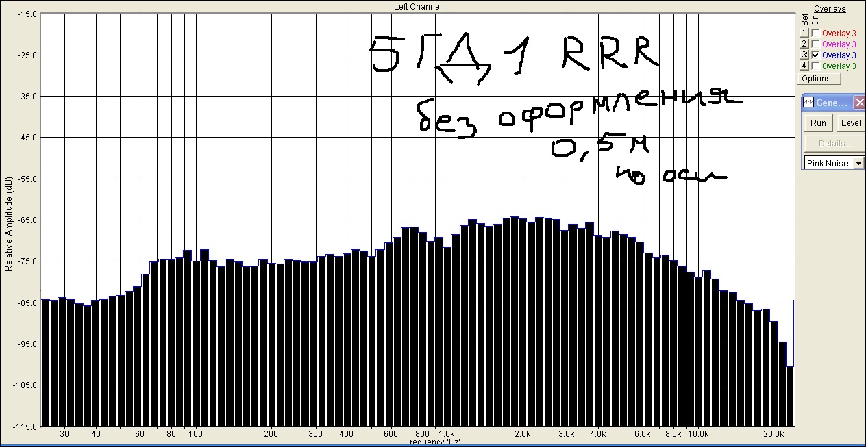 Я растянул график АЧХ 5ГД-1, что выложил Александр Бокарёв, так чтобы совпал масштаб по ось дБ с теми АЧХ, что я намерил со своих динамиков. И наложил.