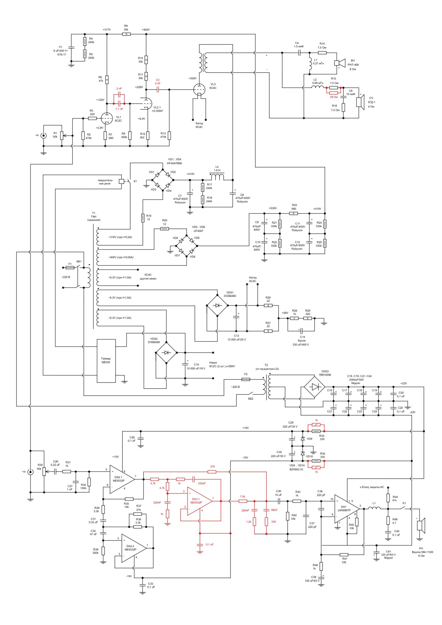 Собрал всё в кучу. Теперь, у меня такая ситуация: левый канал остался в старом состоянии. Схема левого канала: