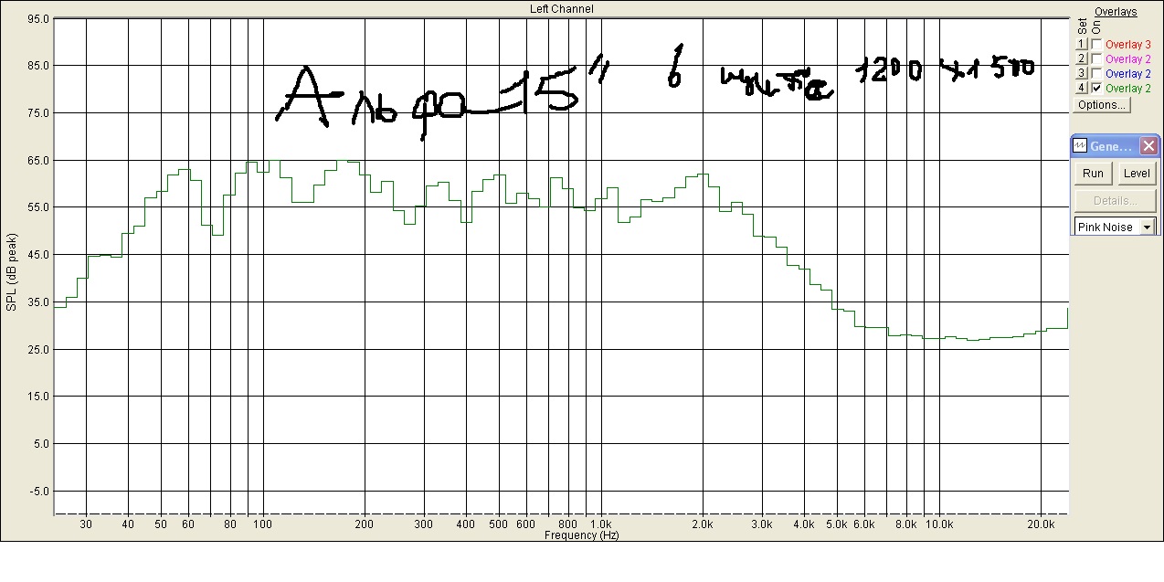 Бас был неплох, но строго по оси. Ну и дикий горб на резонансе ящика.