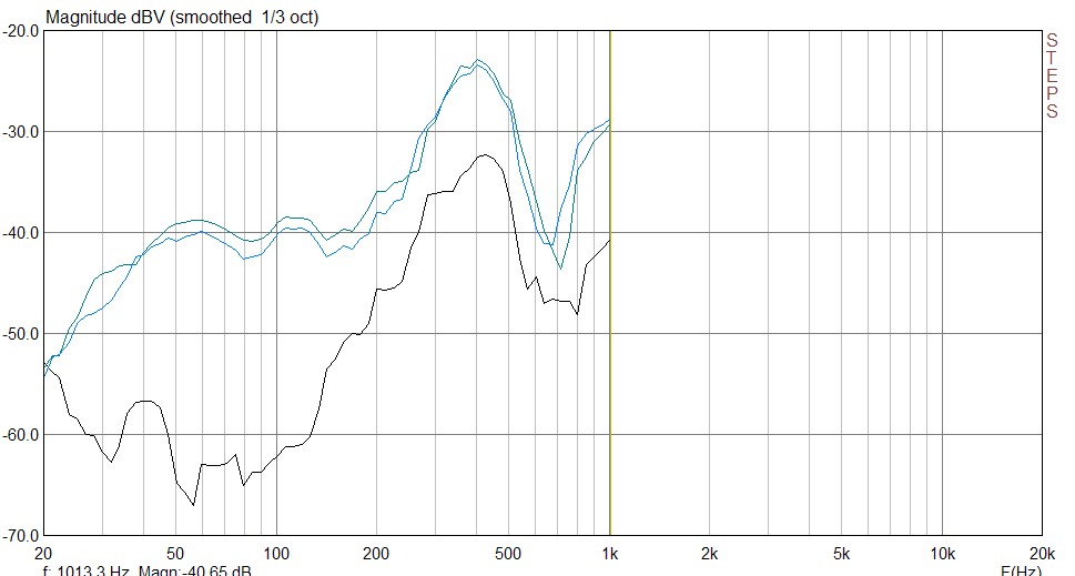 Там по памяти, амплитуда резонансов спадала с частотой, самый могучий 30 гц, остальные терпимо. В пределах общей болтанки комнатной.