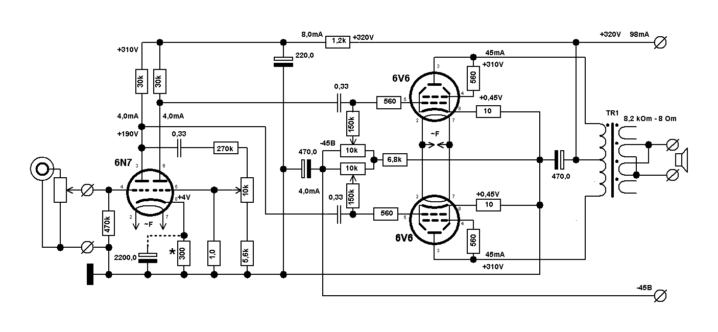 Ну а тем временем - я подключил в схеме, где у меня двухтактный лонгтейл - подключил вторые сетки выходных ламп к отводам первички выходника. То есть - перевёл в "ультралинейный режим". Звучание поменялось сильно. В нужную мне сторону. Струны у электрогитар чуть ли не зазвенели. Но: какой-то небольшой перебор с этим перезвоном струн... похоже - нужна отрицательная обратная связь, хоть небольшая (наверное). В общем - чувствуется у этого варианта большой потенциал в нужную мне сторону. Это надо сейчас мне тут записать и отметить - возможно, надо рассмотреть более аккуратно этот вариант очень простой и лаконичной схемы. Аккуратно выбрать режим первой лампы (напряжение на её анодах), аккуратно подобрать катодный резистор у выходных ламп. Ну и подумать - как можно обезопасить себя от возможного увеличения напряжения на анодах первой лампы. У Моррисона, например - первая лампа питается от гораздо мЕньшего напряжения, чем выходной каскад - может это как-то обезопасивает от заброса напряжения на анодах первой лампы.