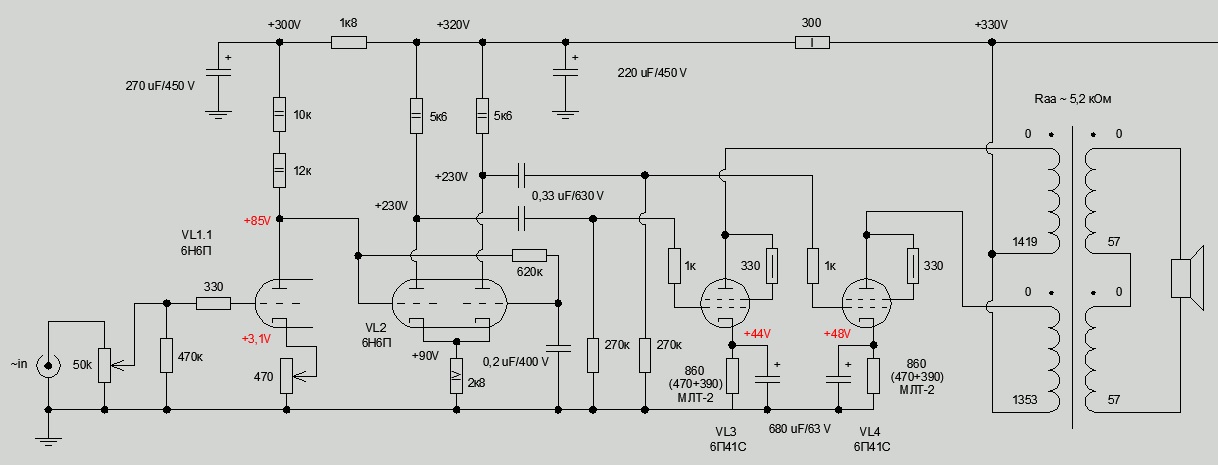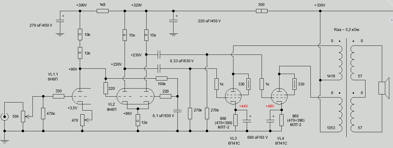 сеточный резистор и 1м и 620 ком - за пределами разумного для 6н6п. Она имеет свойство уплывать режимом из-за токов сетки. И кто эти номиналы указал, тот дурак.Собрал макет. Но потерпел фиаско при попытке его запустить.