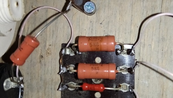 Дошло до того, что на одном из анодных резисторов (5к6) у меня появился расплыв краски - скорее всего от перегрева (верхний)