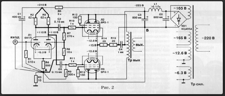 Несколько раз проверил подключение лепестков панельки VL2 - всё правильно. Ставил другую 6Н6П - результат тот же. Помогите, подскажите - где и как искать причину такого явления.