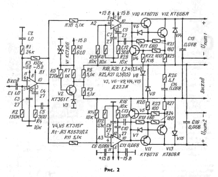 Приятно отметить практически от питания до питания размах полезного сигнала, потеря менее полувольта.