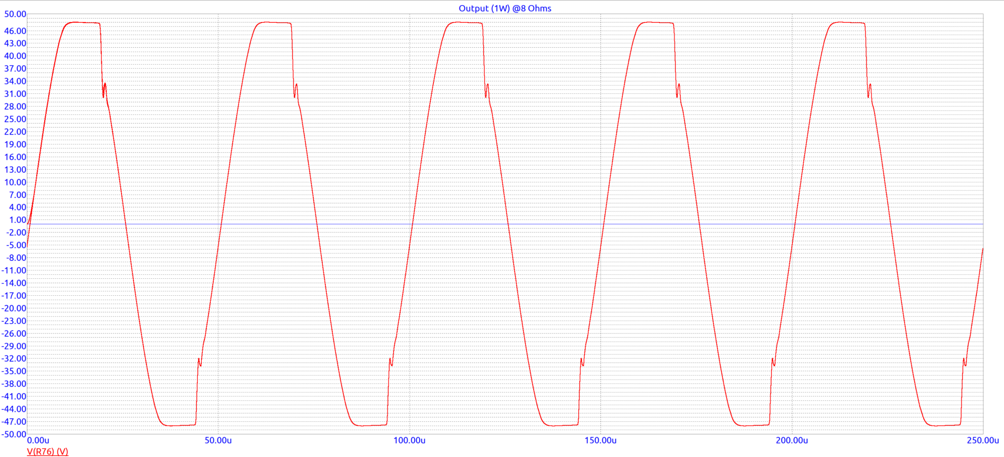 Хорошо бы знать выходное амплитудное напряжение уся соответствующее ограничению , ну или максимальную мощность . Что за схема если не секрет ?