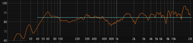 Похоже, у АС проблемы. Добавим НЧ полосе +1дБ, НЧ динамик физически дальше, чем СЧ. Всё равно НЧ отстают на 2...3дБ по уровню. Дыра 800 Гц не имеет объяснения.