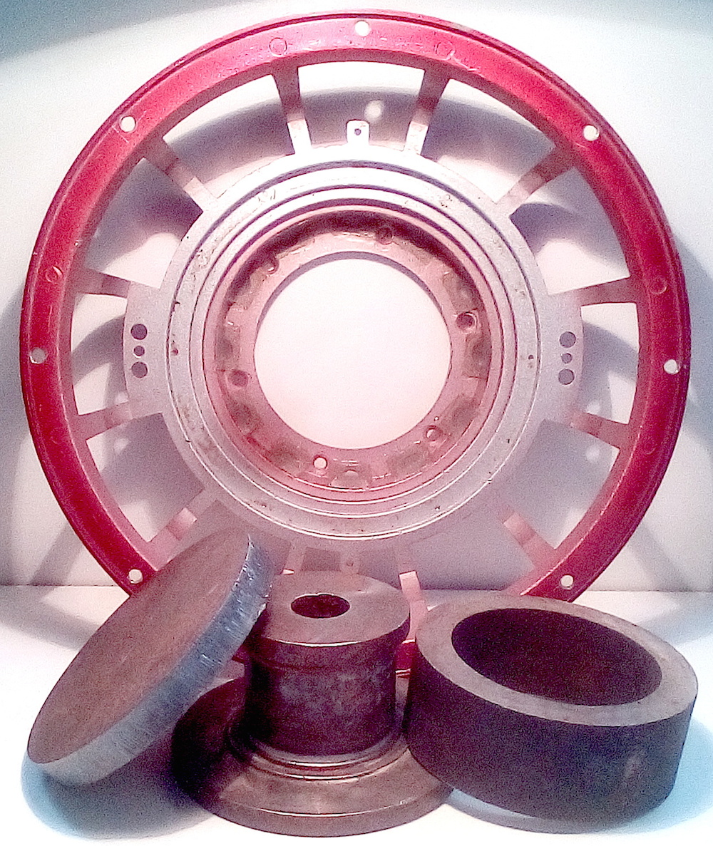 Рама от какого-то 12" автосабвуфера, магнит от Биговской пятнашки, керн с нижним фланцем от какого-то динамика большим литым магнитом, давно валялся что аж заржавел, верхний фланец будет совсем новый из ст10, толщиной 16 мм.