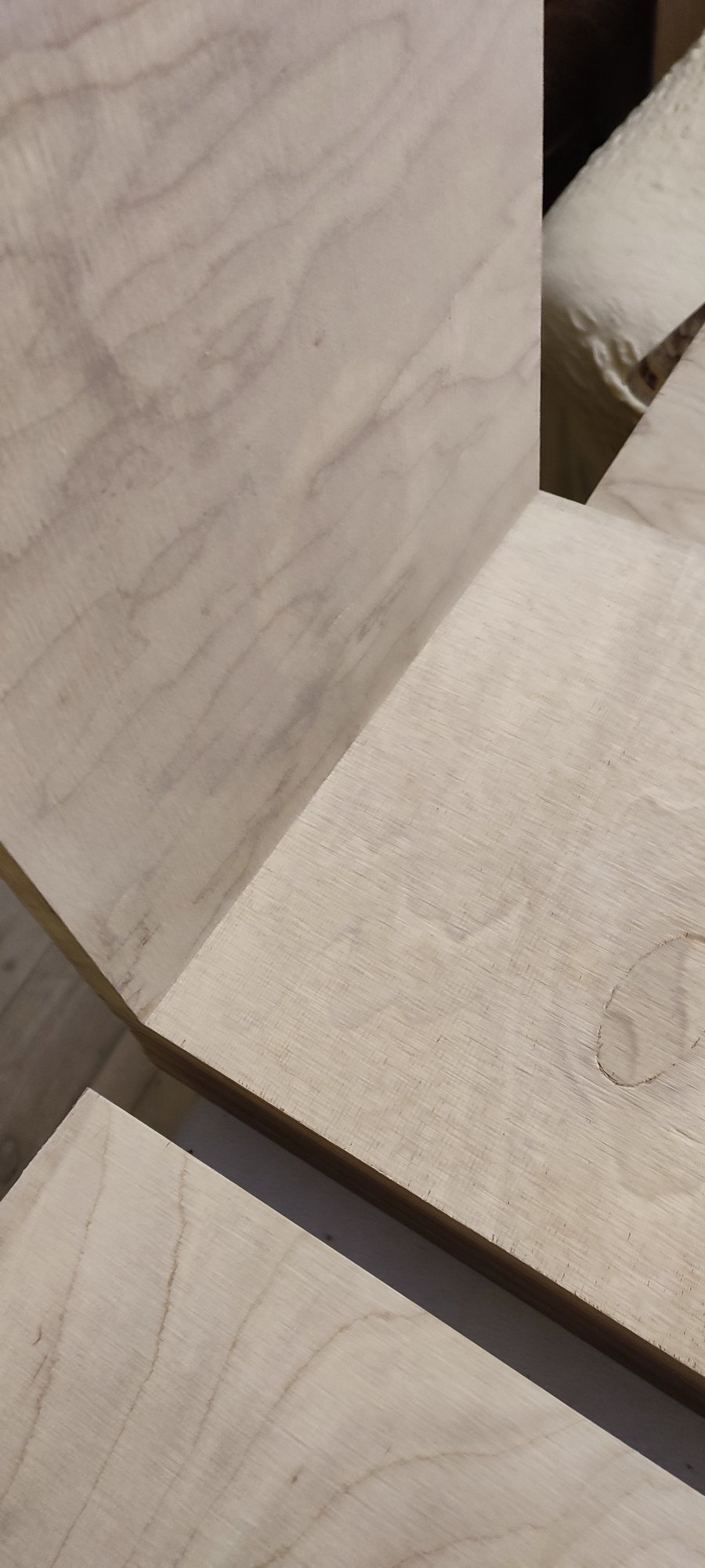 Саморезов для крепления фанеры бояться не нужно. Просто одни лишь саморезы - плохо и только клей - тоже плохо. Идеально работает на фанере связка саморезы + клей. Сверлятся отверстия под шляпки саморезов на половину толщины фанеры. Наносится по всей длине соединения клей. Детали намертво прикручиваются саморезами. Всё высыхает и превращается в монолит. Из шкантов режу пробки и забиваю в отверстия так, чтобы пробка была на пару миллиметров выше шляпки самореза, что гарантирует отсутствие бугорка.