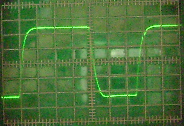 Меандр 32 кГц, ТП- 200 мА. Полевики на выходе поставил с конской ёмкостью 10 000 пФ. Хотел на предвыход поставить BD139/140 и увеличить ток преда, но тоже поленился.